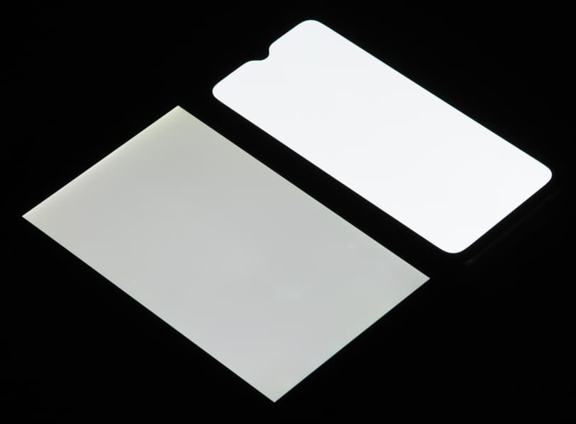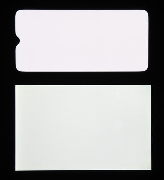 Яркость под углом у обоих экранов заметно уменьшилась (чтобы избежать сильного затемнения, выдержка увеличена в сравнении с предыдущими фотографиями), но в случае Realme XT падение яркости меньше. В итоге при формально одинаковой яркости экран Realme XT визуально выглядит гораздо более ярким (в сравнении с ЖК-экранами), так как на экран мобильного устройства часто приходится смотреть как минимум под небольшим углом.