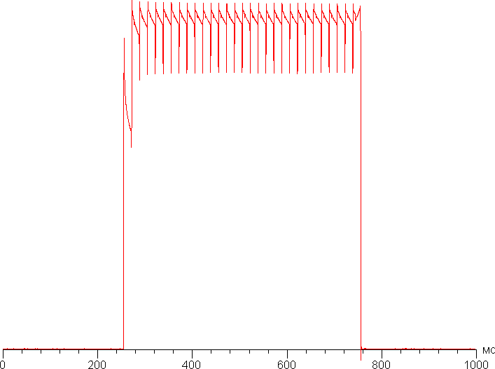 Видно, что цвета не сильно изменились у обоих экранов и яркость у Realme XT под углом заметно выше. Переключение состояния элементов матрицы выполняется практически мгновенно, но на фронте включения может присутствовать ступенька шириной примерно 17 мс (что соответствует частоте обновления экрана примерно в 60 Гц). Например, так выглядит зависимость яркости от времени при переходе от черного к белому и обратно: