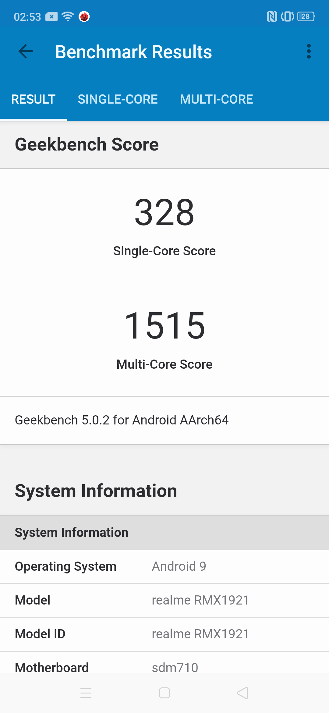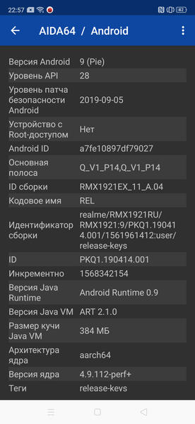 - Операционная система Android 9.0 (Pie); ColorOS 6 Realme Edition