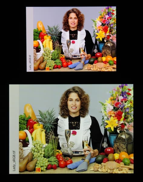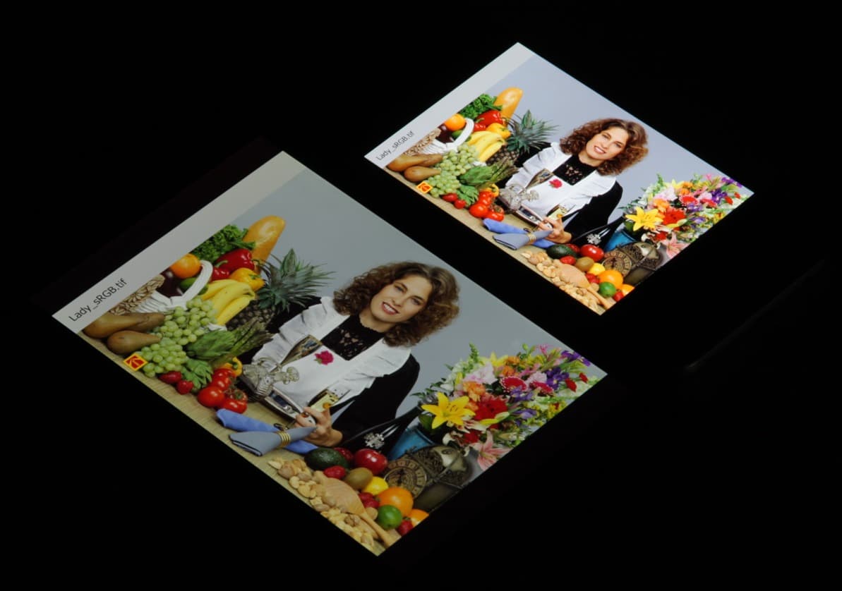 Отметим, что на экранах с широким цветовым охватом без соответствующей коррекции цвета обычных изображений, оптимизированных для устройств sRGB, выглядят неестественно насыщенными. Это уместно только при просмотре материала с охватом DCI-P3, принятым в цифровом кинематографе, но в быту встречающимся редко.
