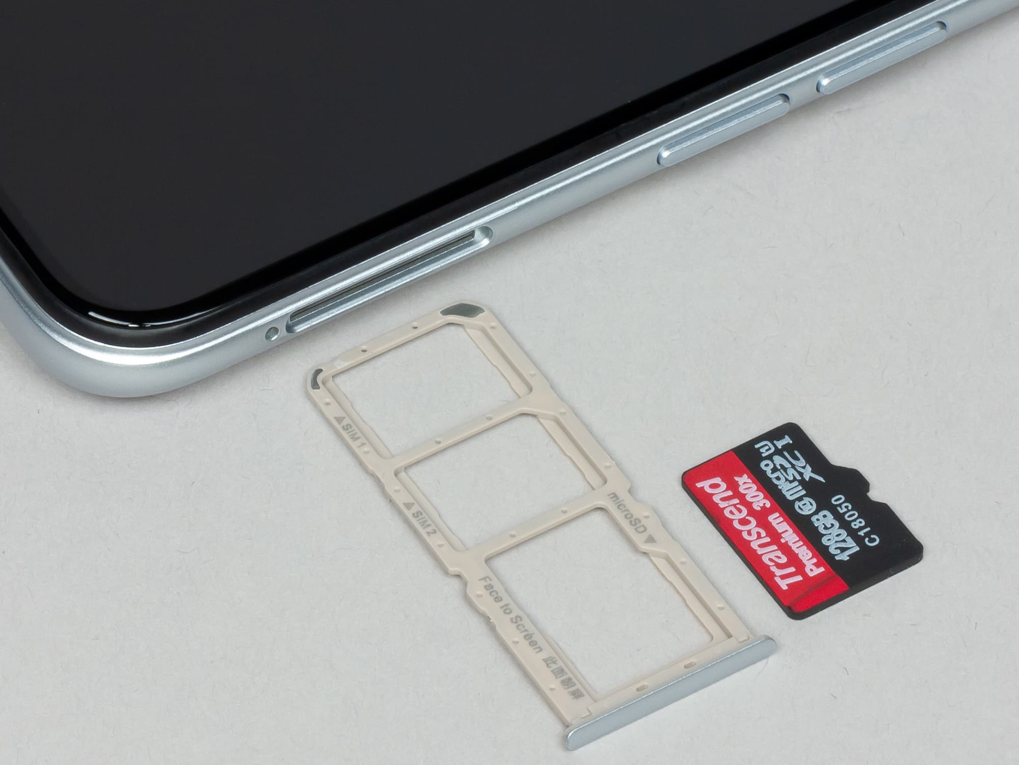В боковой лоток можно вставить одновременно две карты Nano-SIM и карту памяти microSD. Учитывая еще и встроенный объем памяти в 128 ГБ, смартфон по этому показателю может удовлетворить любые потребности. Поддерживается горячая замена карточек.