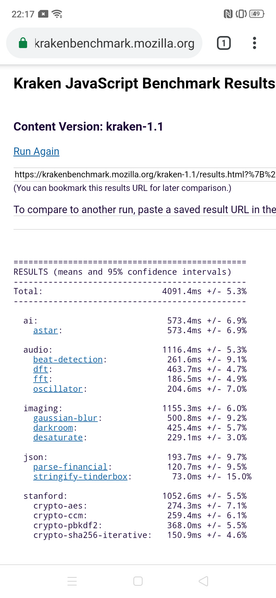 Что касается бенчмарков для оценки скорости движка javascript, то стоит всегда делать скидку на то, что в них результаты существенно зависят от браузера, в котором запускаются, так что сравнение может быть истинно корректным только на одинаковых ОС и браузерах, а такая возможность имеется при тестировании не всегда. В случае с ОС Android мы всегда стараемся использовать Google Chrome.