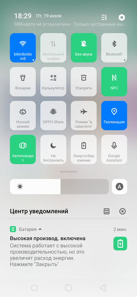 Поддерживается быстрая зарядка (VOOC 3.0): на практике от комплектного сетевого адаптера смартфон полностью заряжается в течение полутора часов током 3,5 А при напряжении 4,5 В (≈16 Вт).