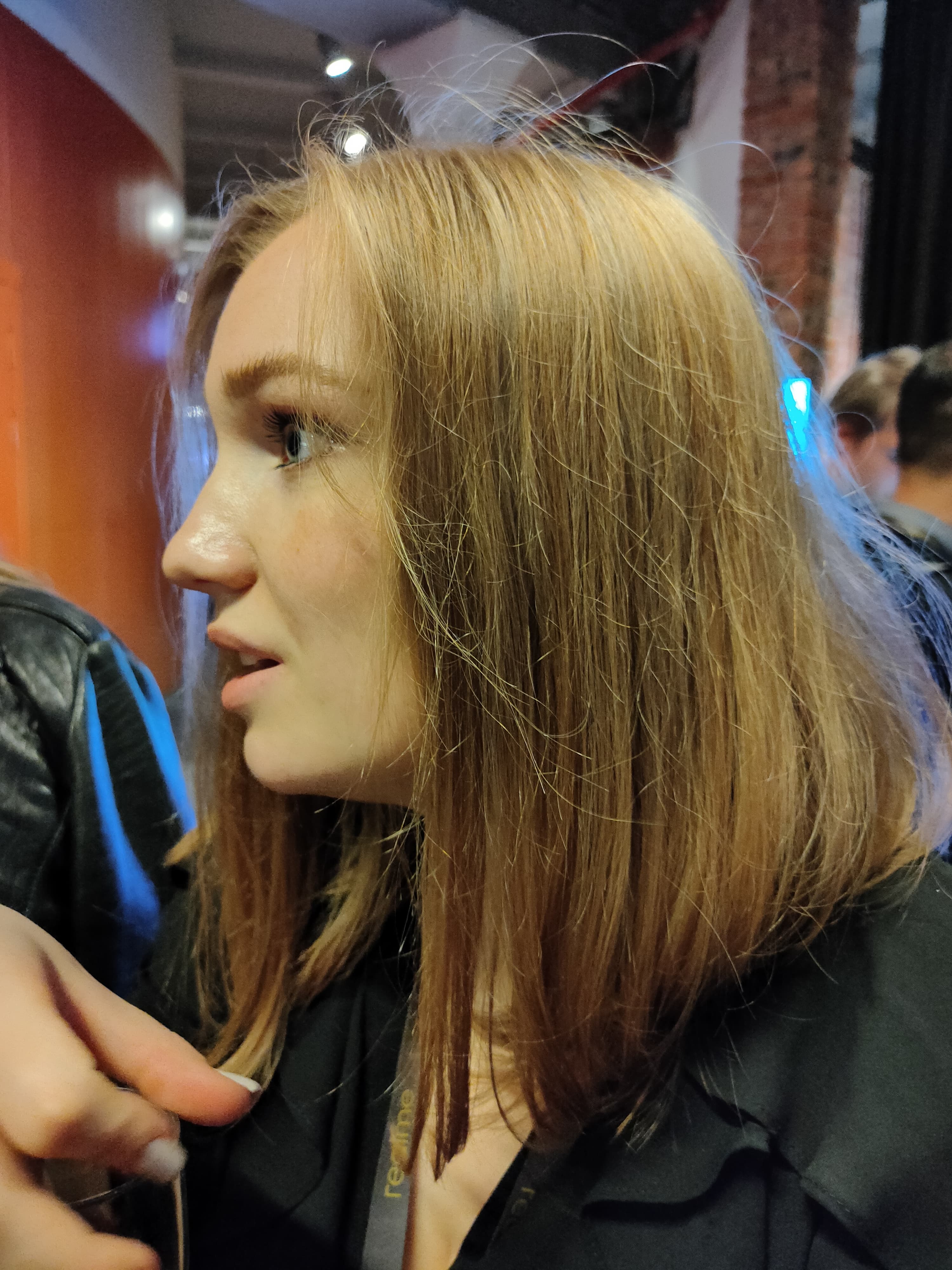 Фронтальная камера у Realme XT имеет разрешение 16 Мп (сенсор 1/3,1″, 1,0 мкм) и объектив f/2,0 и выдает очень хорошие по резкости и детализации снимки. При съемке в 16 Мп заметны огрехи в изображении, так что мы бы рекомендовали ограничиться разрешением 8 Мп — при этом картинка отличная. При съемке в помещениях разумный размер снимка еще меньше, на уровне 4 Мп, но все-таки получить вполне приличный кадр удается. Фон на портретах размывается очень аккуратно. Заметим, что после обработки для размытия фона снимки выглядят немного пересвеченными, хотя без размытия экспозиция отличная — лицо всегда освещено адекватно. Возможно, это будет поправлено в обновлениях прошивки. Краски не слишком сочные, скорее натуральные, но это и хорошо. Вообще, у Oppo/Realme одни из лучших мобильных селфи-камер на рынке, и Realme XT в этом вопросе не исключение.