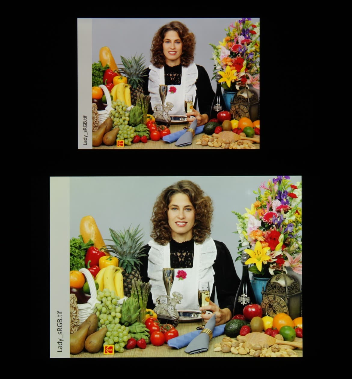 Отметим хорошую равномерность яркости и цветового тона белого поля.