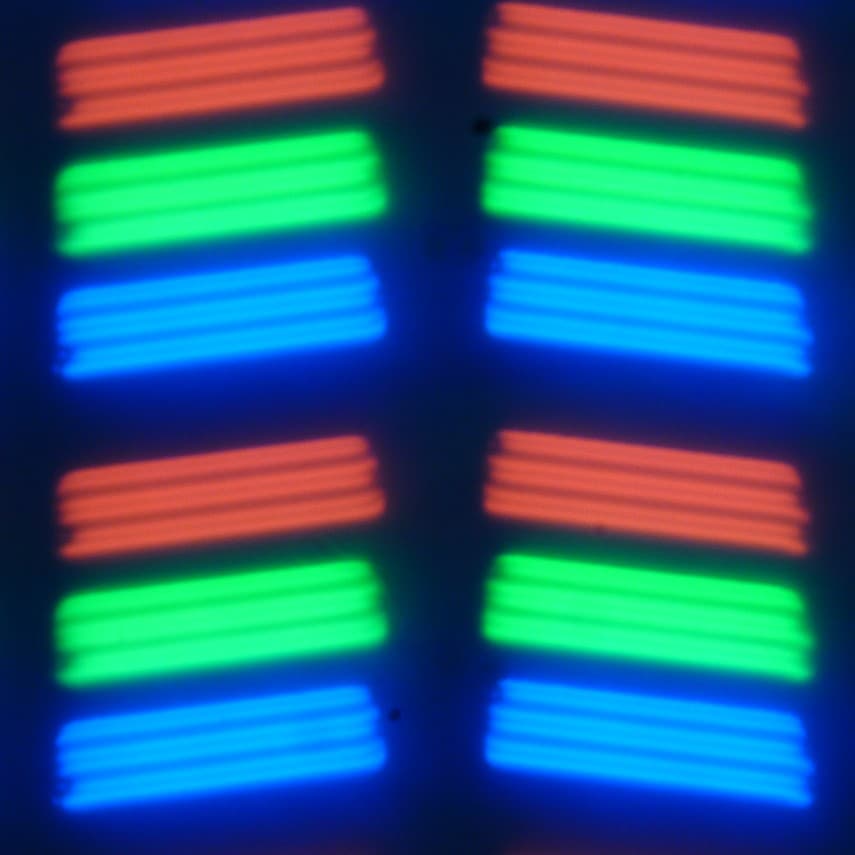 В данном смартфоне используется матрица типа IPS. Микрофотографии демонстрируют типичную для IPS структуру субпикселей: