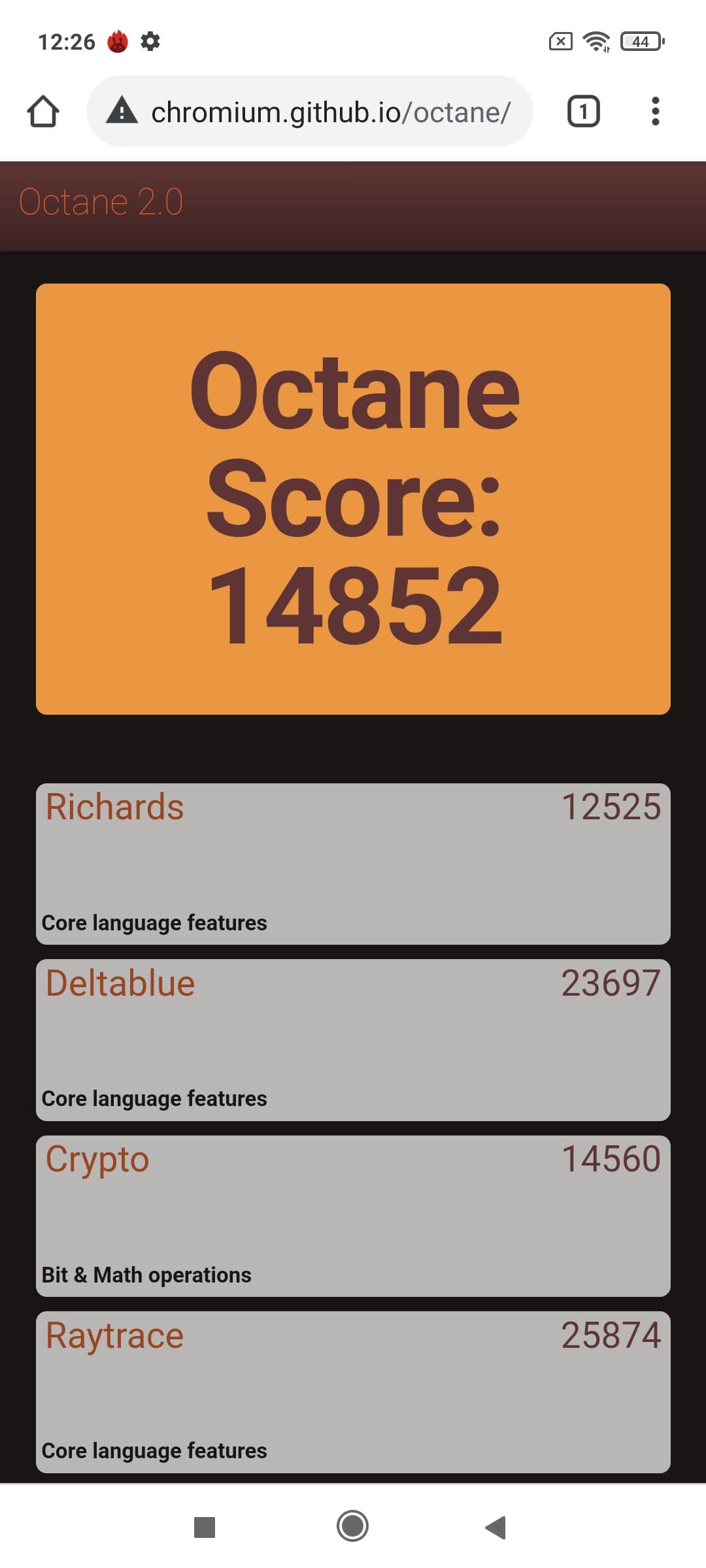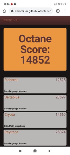 | Google Octane 2 (больше — лучше) | 14852 | 17377 | 16048 | 9011 | 13169 |