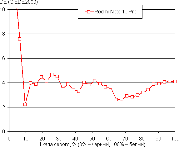 (Самые темные области шкалы серого в большинстве случаев можно не учитывать, так как там баланс цветов не имеет большого значения, да и погрешность измерений цветовых характеристик на низкой яркости высокая.)