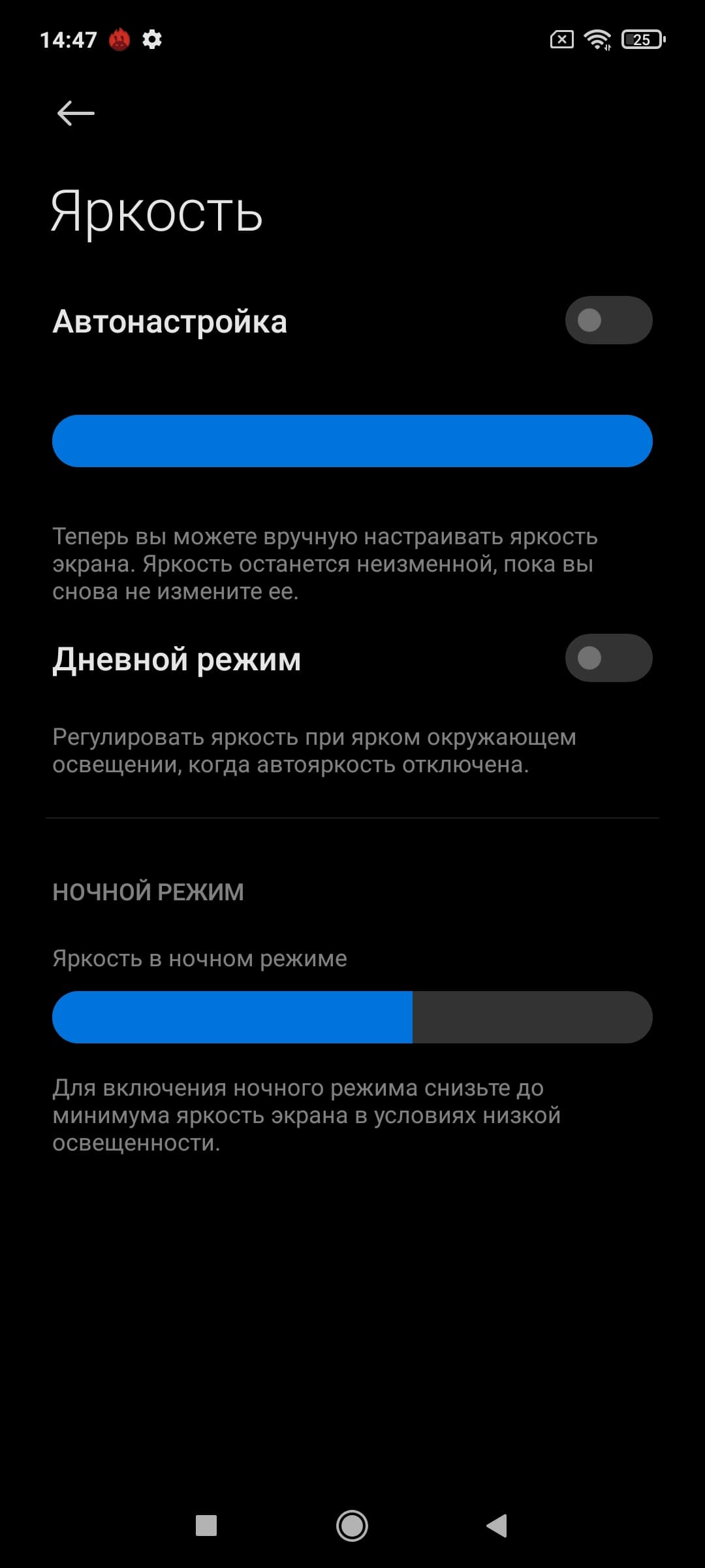 Фотография выше получена для профиля Авто в настройках экрана, который выбран по умолчанию. Профилей всего три: