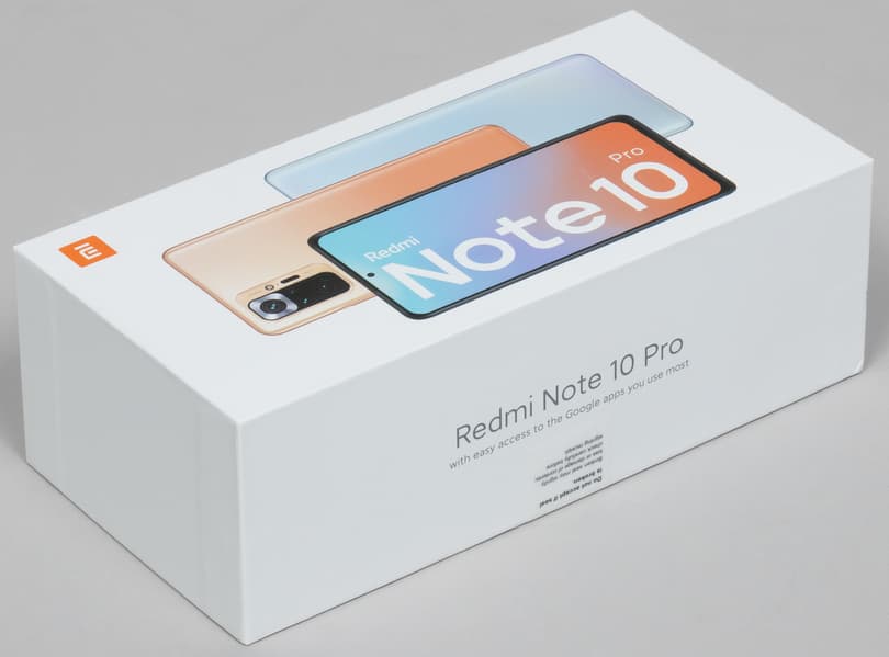 Redmi Note 10 Pro поставляется в стандартно оформленной коробке из твердого картона.