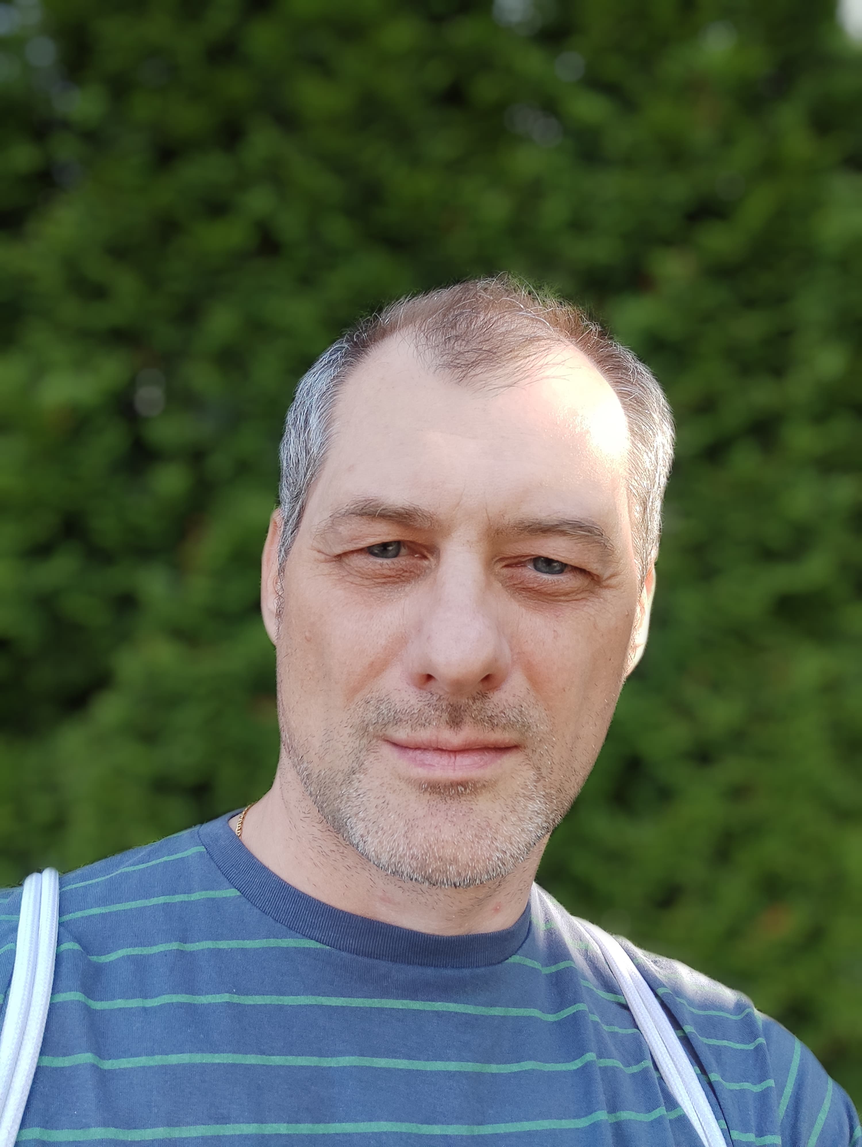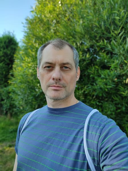 В портретном режиме можно регулировать «виртуальную диафрагму», а по сути — уровень размытия фона, который выполняется, в том числе, с помощью вспомогательного 2-мегапиксельного датчика. ЭФР основной камеры — 26 мм, и тут как ни старайся вытягивать руку, пропорции лица все равно исказятся, этот режим подходит лишь для поясных «портретов». И здесь есть два момента. Во-первых, «открывать» ползунком диафрагму на полную явно не стоит — контуры головы размываются, становятся нечеткими. И во-вторых, ИИ перебарщивает с резкостью и подчеркивает любые морщины и изъяны кожи. В общем, работает топорно.