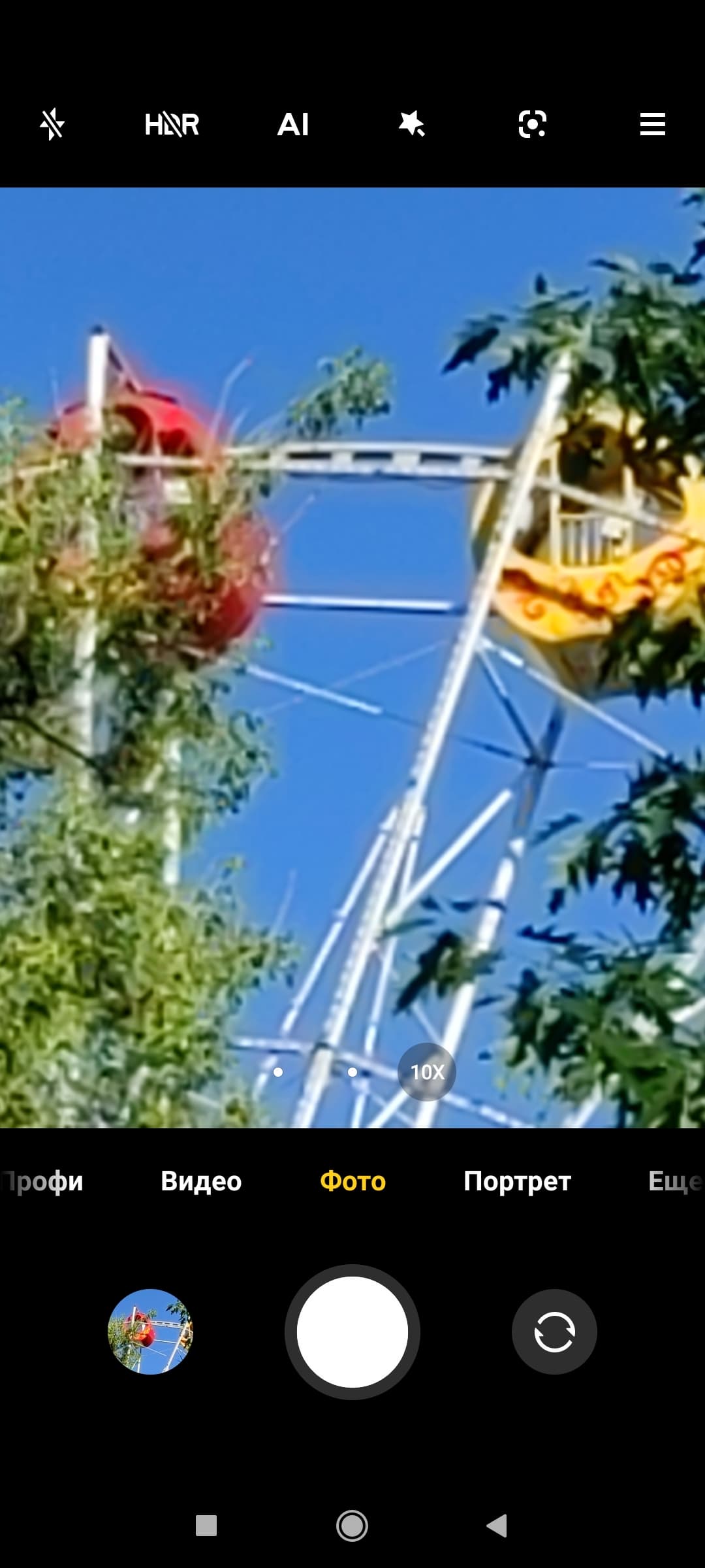 Оптического зума в системе камер нет, поскольку модуля с телеобъективом не установлено. Зум здесь лишь цифровой, максимальное увеличение — 10×.