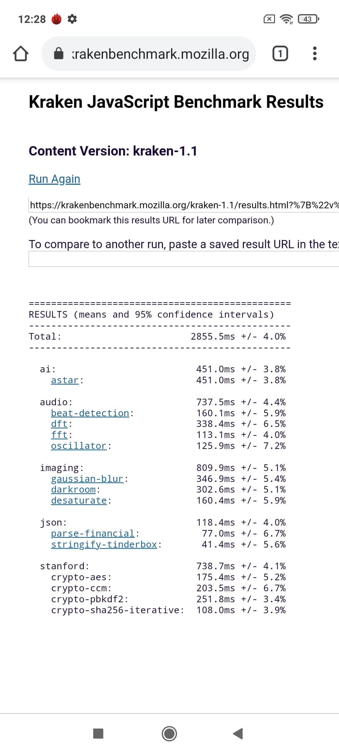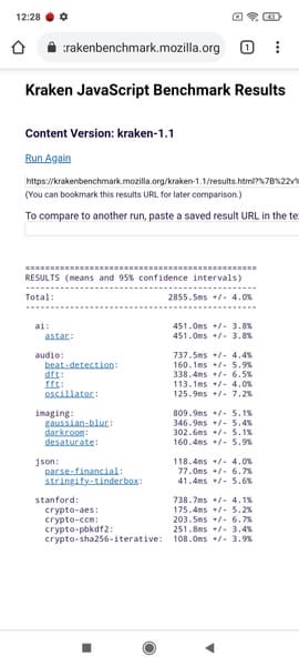 | Mozilla Kraken (мс, меньше — лучше) | 2856 | 2433 | 2958 | 4399 | 2837 |