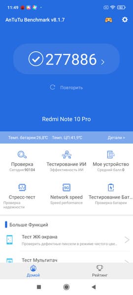 | AnTuTu (v8.x) (больше — лучше) | 277886 | 267863 | 305143 | 183867 | 225064 |