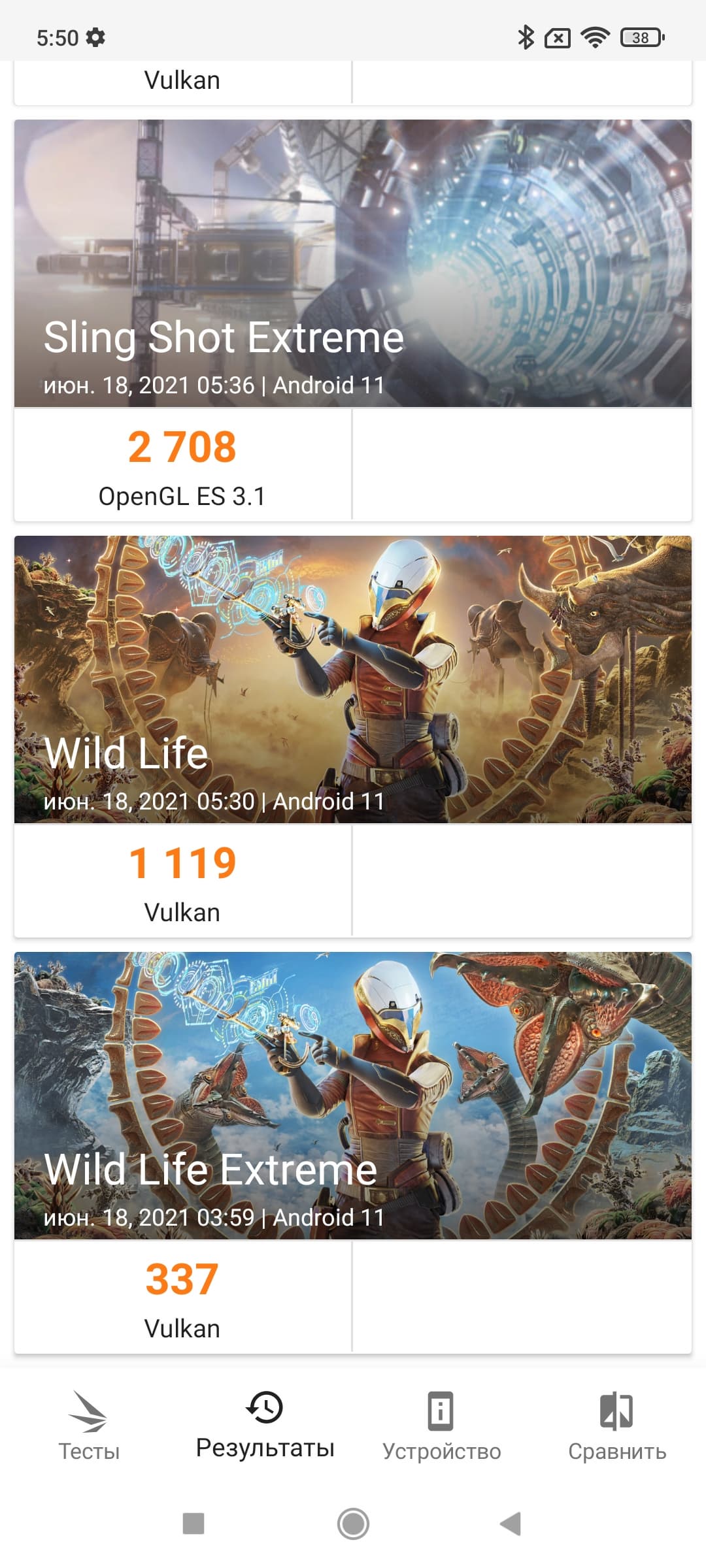 | 3DMark Sling Shot Ex OpenGL ES 3.1 (больше — лучше) | 2708 | 2585 | 2767 | 1155 | 1474 |