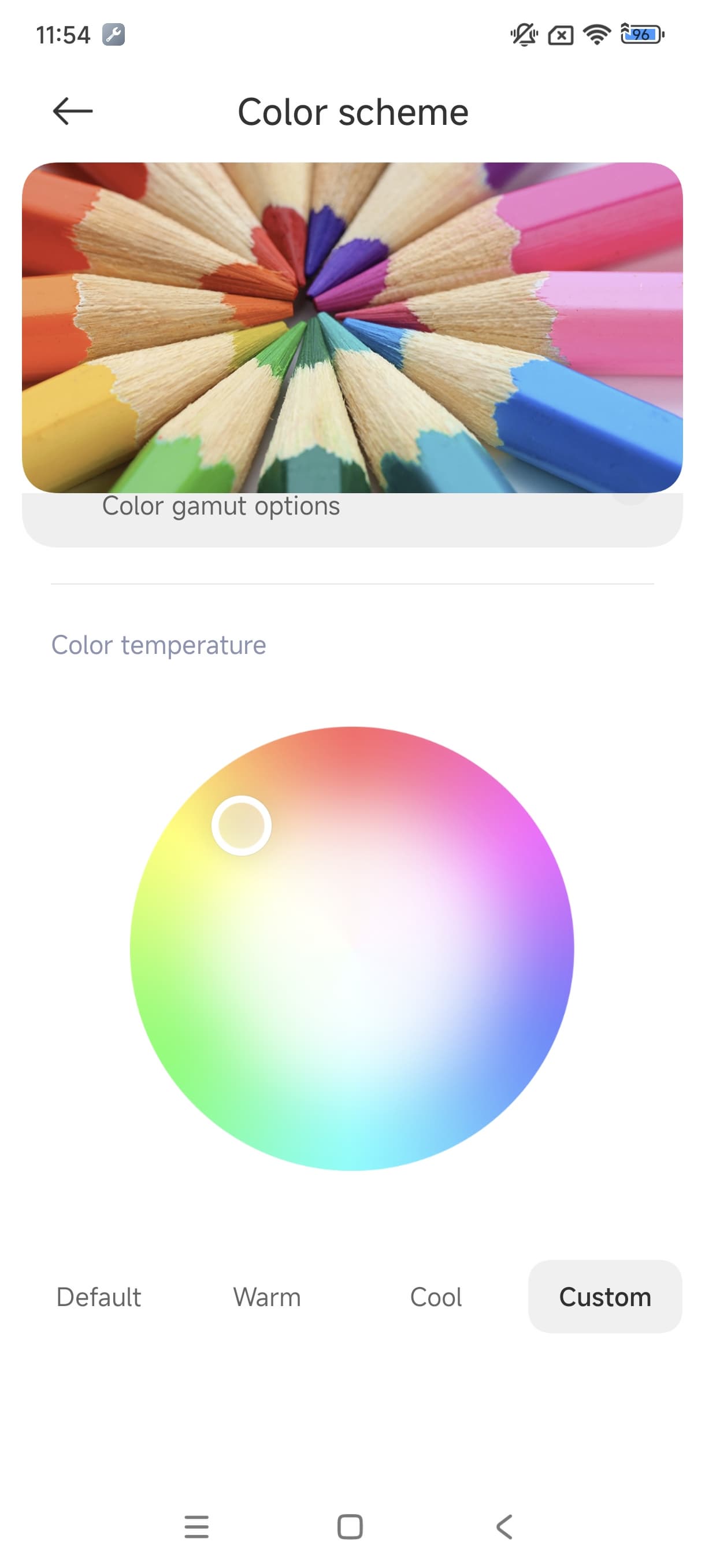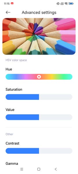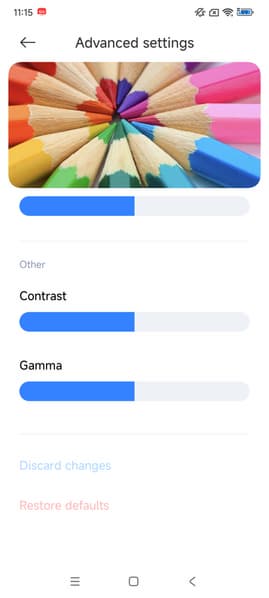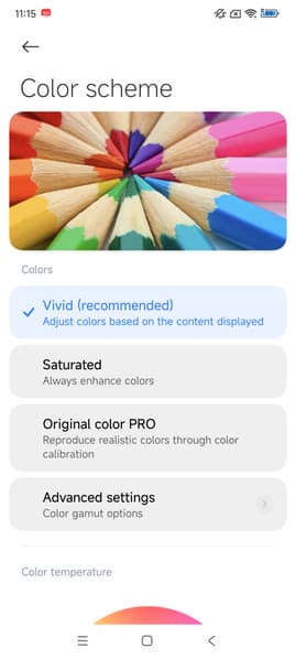 Отметим, что на экранах с уширенным цветовым охватом (без соответствующей коррекции) цвета́ обычных изображений, оптимизированных для устройств sRGB, выглядят неестественно насыщенными. Отсюда и рекомендация: в большинстве случаев смотреть кино, фотографии и все естественное лучше при выборе профиля Vivid с использованием штатной программы Gallery. При использовании сторонних программ нужно в явном виде указать в настройках смартфона профиль с охватом, соответствующим контенту.