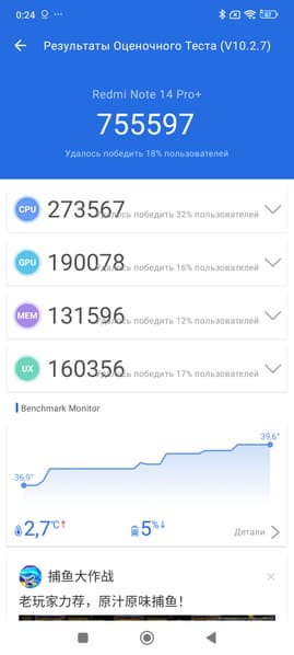 | AnTuTu (v10.x) (больше — лучше) | 755597 | 806671 | 730514 | 620852 | 792657 |
