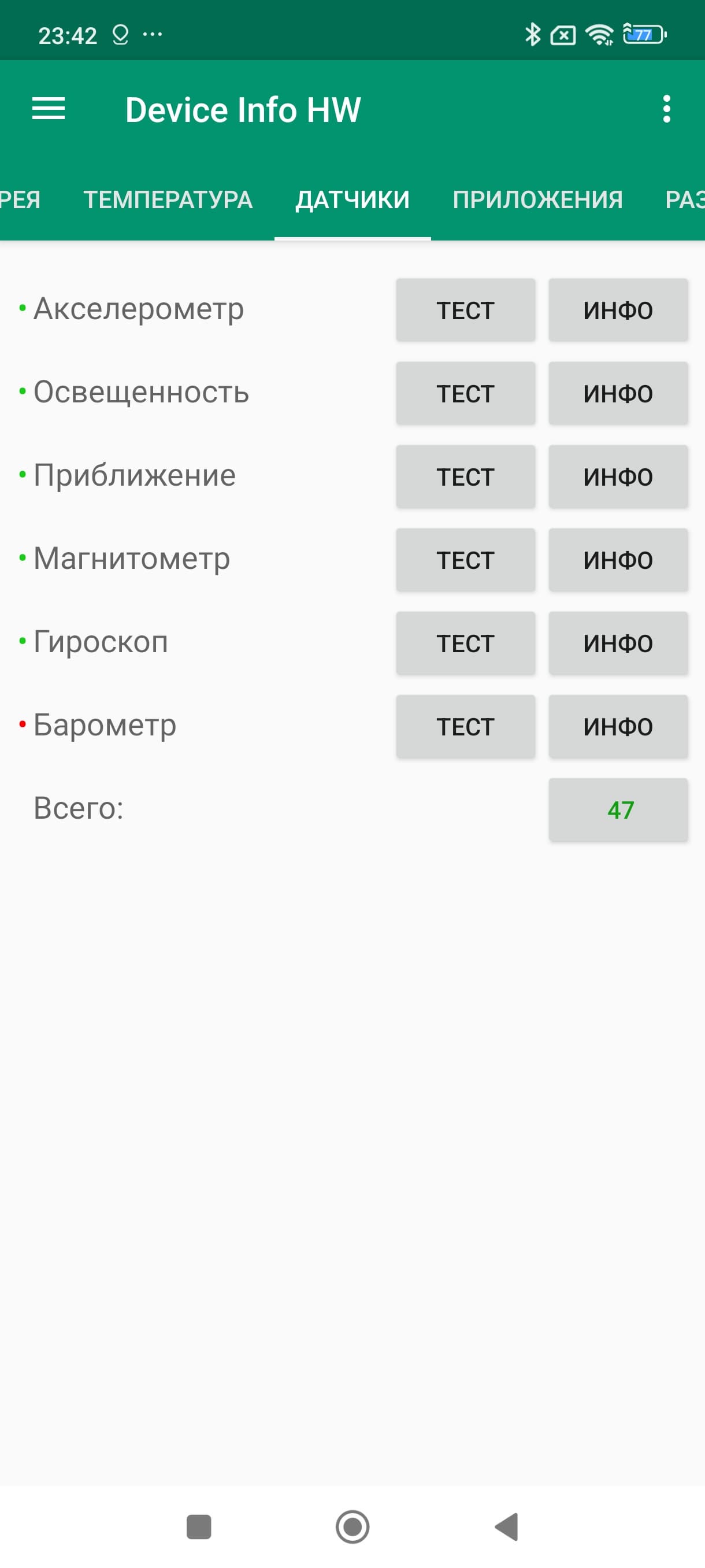 - Датчики приближения и освещения, магнитного поля, акселерометр, гироскоп