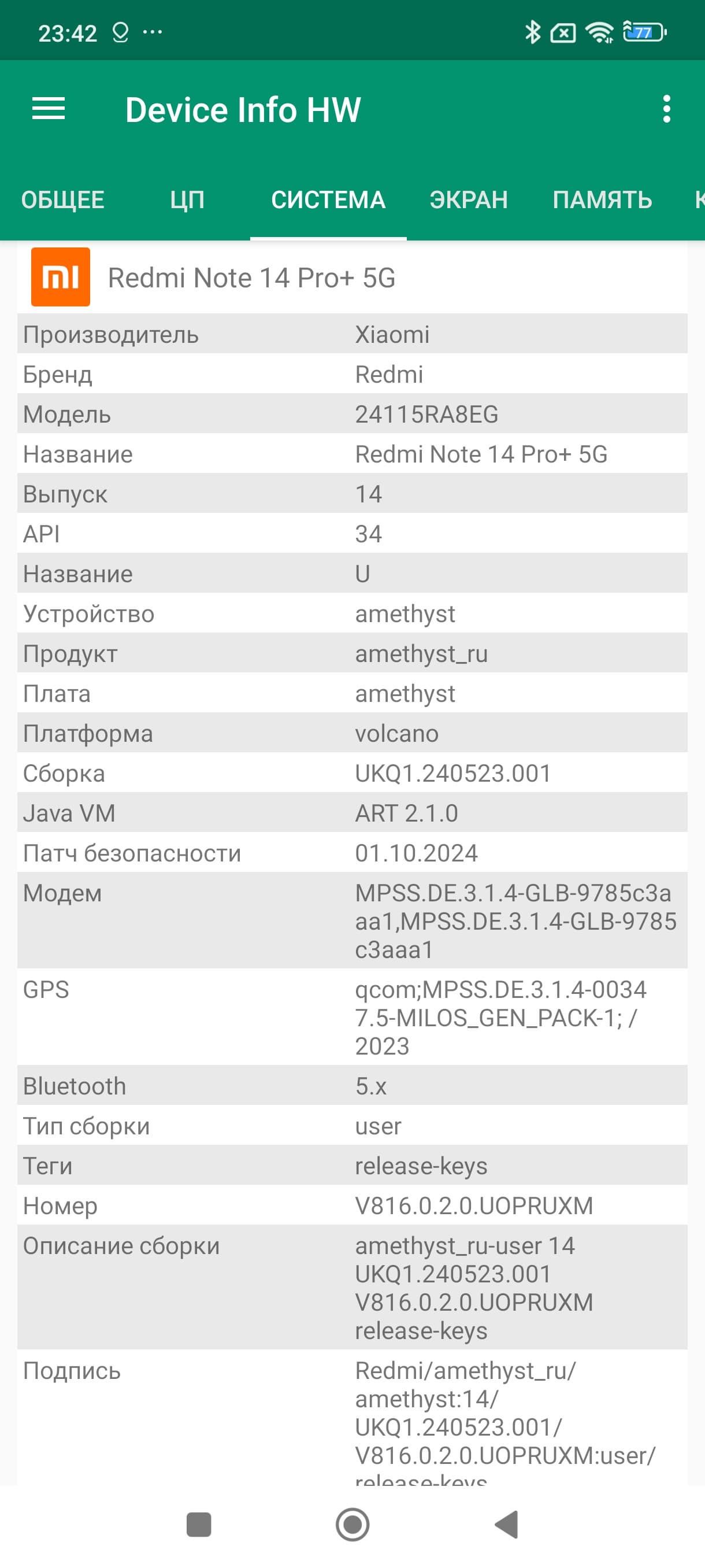 У смартфона Redmi Note 14 Pro+ следующие сетевые возможности: поддерживаются сети вплоть до 5G, два диапазона Wi-Fi 5 (2,4 и 5 ГГц) и Bluetooth 5.4, есть поддержка NFC. На практике в пределах городской черты московского региона аппарат демонстрирует уверенную работу в беспроводных сетях, не теряет связь, быстро восстанавливает связь после вынужденного обрыва. Все необходимые встроенные датчики, вплоть до гироскопа, на месте.