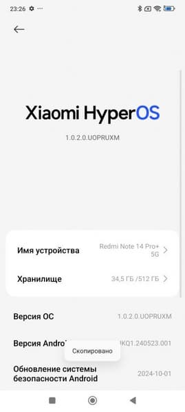 В качестве программной оболочки в Redmi Note 14 Pro+ используется ОС Android 14 с фирменным интерфейсом HyperOS. По сути, это обновленный хорошо известный в прошлом фирменный интерфейс MIUI. Он более лаконичен, хорошо организован, работает плавно и быстро. Верхняя шторка разделена на две части в зависимости от места оттягивания. Имеется полная поддержка сервисов Google и магазин Google Play Store.
