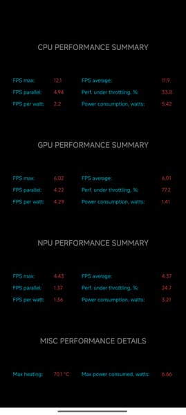 Тест на снижение производительности при нагреве мы проводим с помощью программы Burnout Benchmark, которая позволяет нагружать CPU, GPU и NPU: