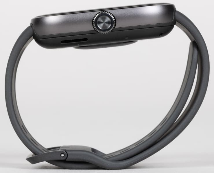 С правой стороны на тыльной поверхности размещены отверстия микрофонов и динамика — через часы можно разговаривать. Производитель отмечает технологии шумоподавления, которые обеспечивают лучшую передачу голоса при беседе, и мы этому вполне верим, но больше беспокоит тот факт, что динамик и микрофоны прилегают к тыльной поверхности руки и, следовательно, при определенном положении рук (например, во время ходьбы) они могут быть закрыты.