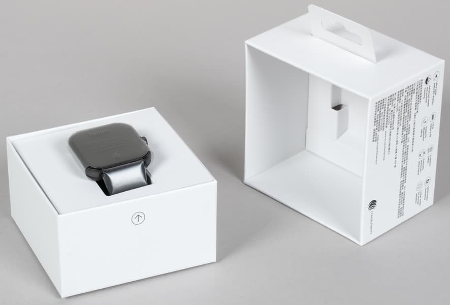 Часы поставляются в коробке из плотного картона со вполне стандартным дизайном, к которому мы привыкли по многим другим аналогичным устройствам.