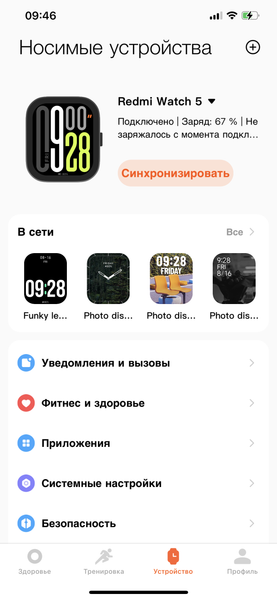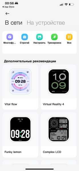 В разделе «Устройство» вам могут понадобиться дополнительные циферблаты. 10 из них установлены на часах, но куда больше доступно онлайн, через приложение. Да, бесплатно.