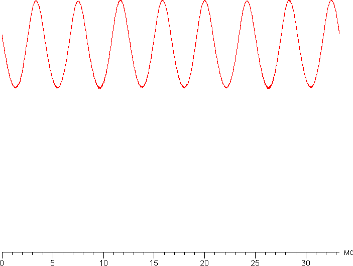 На графике зависимости яркости от времени определяется значимая модуляция с частотой 240 Гц, а при желании на некоторых изображениях при быстром движении часов относительно глаз можно выявить стробоскопический эффект. Однако по факту при обычном использовании мерцание не обнаруживается, так как фаза модуляции различается по площади экрана. На рисунке ниже приведены зависимости яркости (вертикальная ось) от времени (горизонтальная ось) для максимального значения яркости: