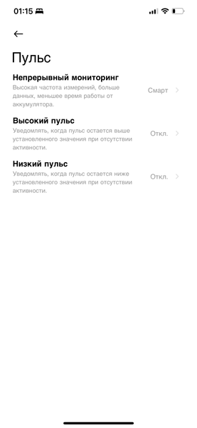 Важный нюанс: многие опции по умолчанию отключены в целях экономии батареи. Например, круглосуточное отслеживание пульса и уровня кислорода в крови. Так что имеет смысл перед началом использования часов погулять по настройкам. Там же, кстати, можно активировать и весьма полезные для некоторых пользователей и не самые распространенные функции: оповещение о падении уровня SpO2 при пробуждении, оповещения о слишком высоком или низком пульсе.