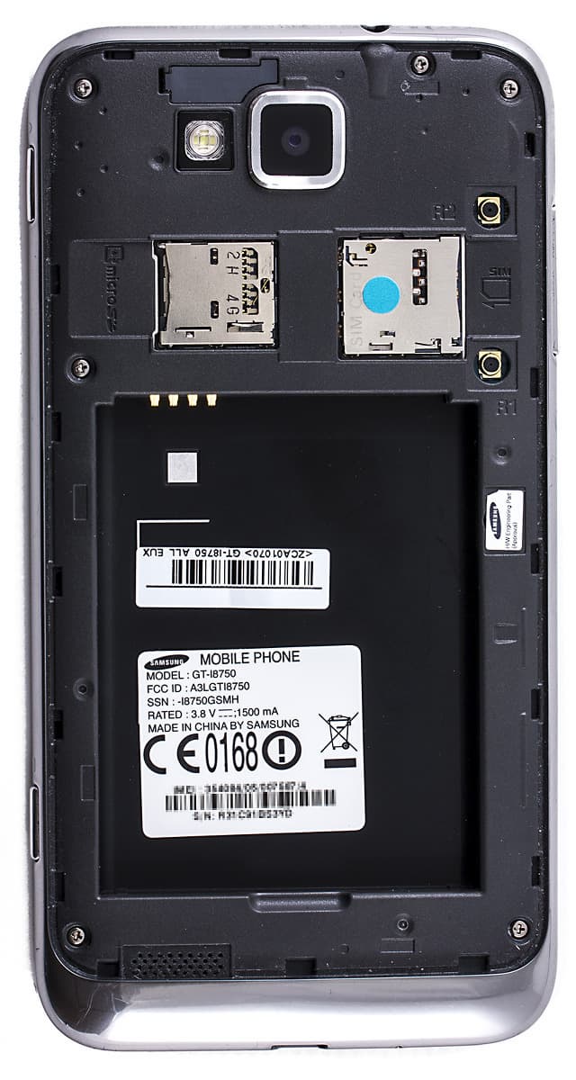 Смартфон имеет съемную крышку, за которой находится батарея, слот для Micro-SIM и карты памяти microSD. Крышка держится на традиционных защелках. Карту памяти можно заменять без выключения аппарата.