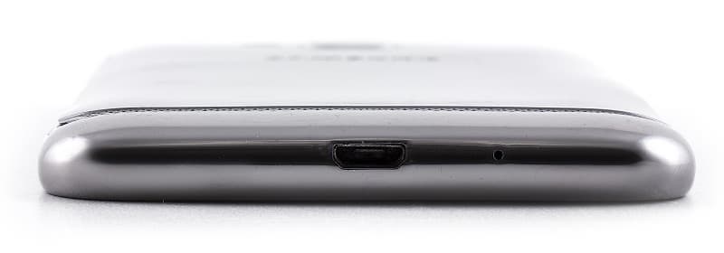 На верхнем торце аппарата находится разъем гарнитуры (3,5 мм) и отверстие второго микрофона. По центру нижнего торца разместили разъем Micro-USB, а немного в стороне — основной микрофон.
