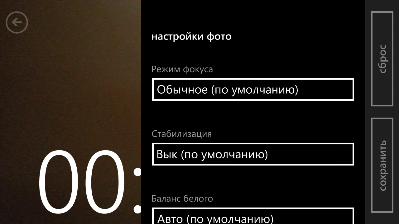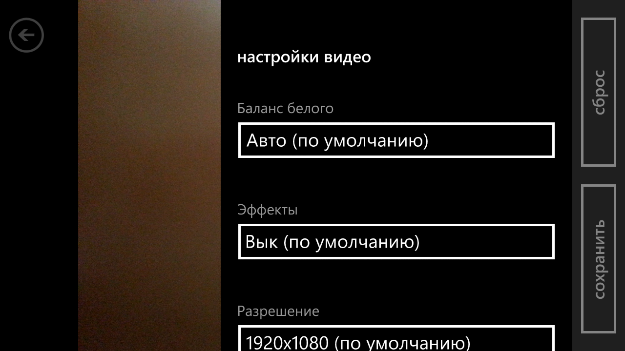 Программа для съемки стандартная, никаких дополнительных возможностей (панорам или HDR) в ней нет. Для видео можно выбрать баланс белого, видеоэффект и разрешение. Для фотосъемки опций немного больше, добавлены также режим фокуса, ISO, коррекция экспозиции и другие.