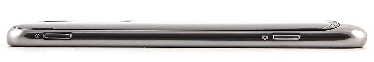 В верхней части левого торца установлена кнопка регулировки громкости. С противоположной стороны корпуса находится кнопка включения питания, а в нижней части торца — кнопка фотокамеры.