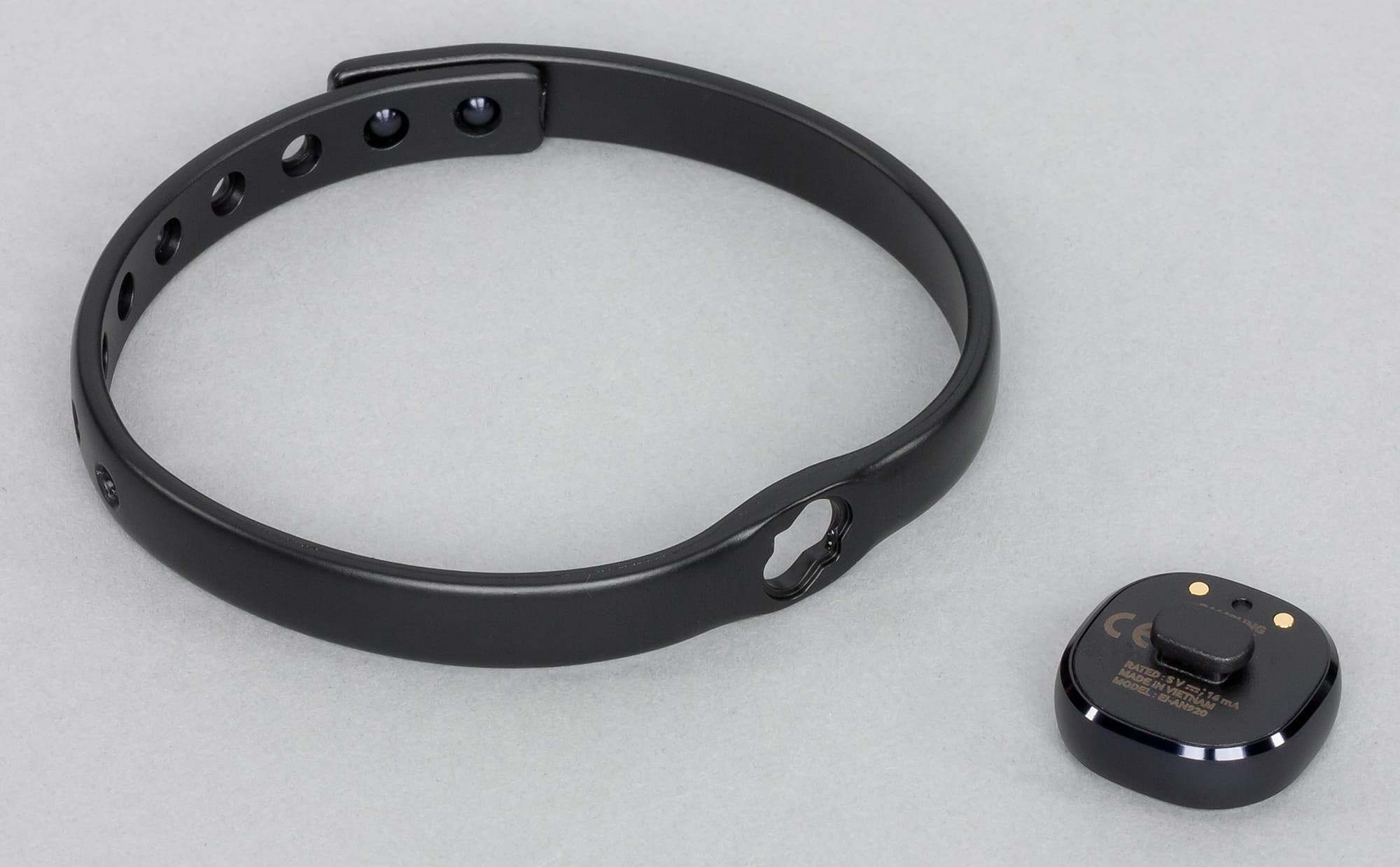 Эта док-станция очень напоминает аналогичные приспособления для Samsung Gear Fit и первых двух поколений часов Samsung Gear. Она надевается на корпус браслета с тыльной стороны таким образом, чтобы совпали два контакта на док-станции и браслете.