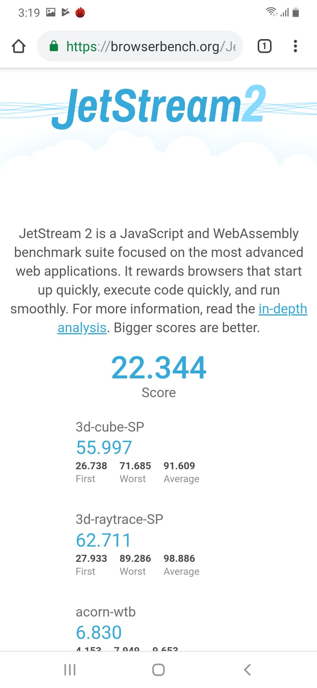 Что касается бенчмарков для оценки скорости движка javascript, то стоит всегда делать скидку на то, что в них результаты существенно зависят от браузера, в котором запускаются, так что сравнение может быть истинно корректным только на одинаковых ОС и браузерах, а такая возможность имеется при тестировании не всегда. В случае с ОС Android мы всегда стараемся использовать Google Chrome.