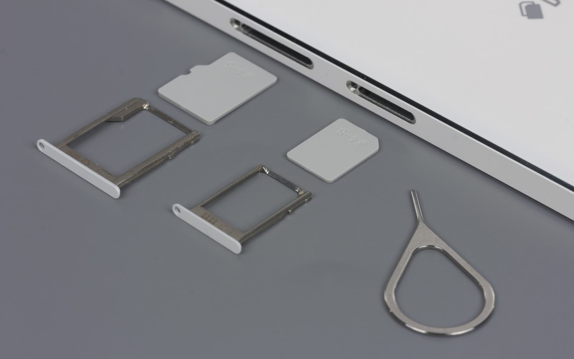 Как уже было сказано, задняя стенка и боковины выполнены здесь из металла, съемных элементов у корпуса нет, до батареи самостоятельно не добраться. Соответственно, SIM-карта и карта памяти устанавливаются в боковые слоты, въезжая в них на металлических салазках. Согласно сложившейся в последнее время не очень-то приятной традиции, здесь предлагается пойти на компромисс и выбрать лишь один из возможных вариантов использования карточек: либо установить две Nano-SIM-карты без возможности расширения памяти, либо поставить во второй слот карточку microSD, но тогда с двумя SIM-картами аппарат работать не сможет. Эта странная идея экономии захватила умы не только китайских разработчиков, но, как оказалось, и корейских тоже. Совершенно непонятно, какой выигрыш должно обеспечить такое решение — ведь на рынке полно аппаратов с одновременной поддержкой двух SIM-карт и карты памяти, причем даже с двумя «полноразмерными» карточками Mini-SIM, ничего особенного в этом нет.
