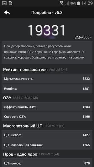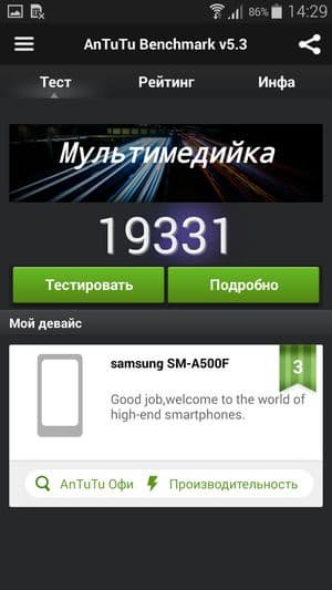 | AnTuTu (больше — лучше) | 19331 (v5.x) | 19574 (v5.x) | 16899 (v5.x) | 18239 (v5.x) | 18057 (v5.x) | 19551 (v4.x) |