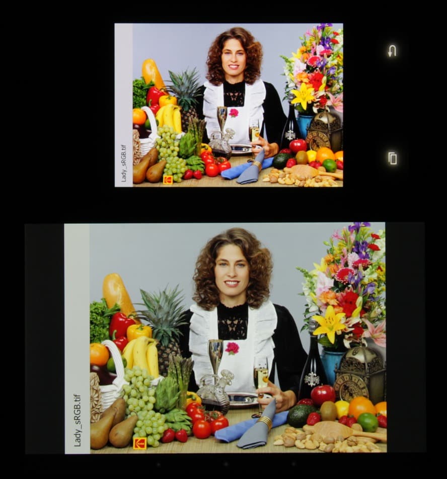 Отметим, что на экранах с широким цветовым охватом без соответствующей коррекции цвета обычных изображений, оптимизированных для устройств sRGB, выглядят неестественно насыщенными. Отсюда и рекомендация — в большинстве случаем смотреть кино, фотографии и все естественное лучше при выборе профиля Основной, и только если фотография сделана на установке Adobe RGB, имеет смысл переключить профиль на Фото AMOLED. Профиль Фильм AMOLED, несмотря на название, наименее пригоден для просмотра фильмов и вообще чего бы-то ни было.