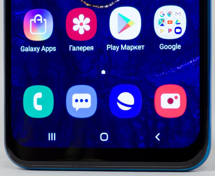 В качестве программной платформы Samsung Galaxy A50 используется ОС Android 9-й версии с возможностью обновления по воздуху (ОТА). Фирменная оболочка Samsung One UI пришла на смену Samsung Experience. Освежился дизайн, расширилась поддержка жестов, в темы оформления добавили модный темный вариант. Дизайн иконок стал чуть более округлым и более похожим на Material Design. Навигационная панель Android с тремя кнопками сменилась «жестовой» полоской. Интерфейс стал более легким и интуитивно понятным, предустановленных программ немного, и почти все они полезные, хотя поражает упорство Samsung в установке набора приложений Microsoft. Без них точно можно обойтись.