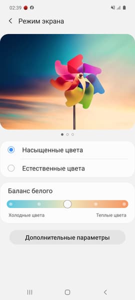 Фотография выше получена после выбора профиля Естественные цвета в настройках экрана, всего их два: