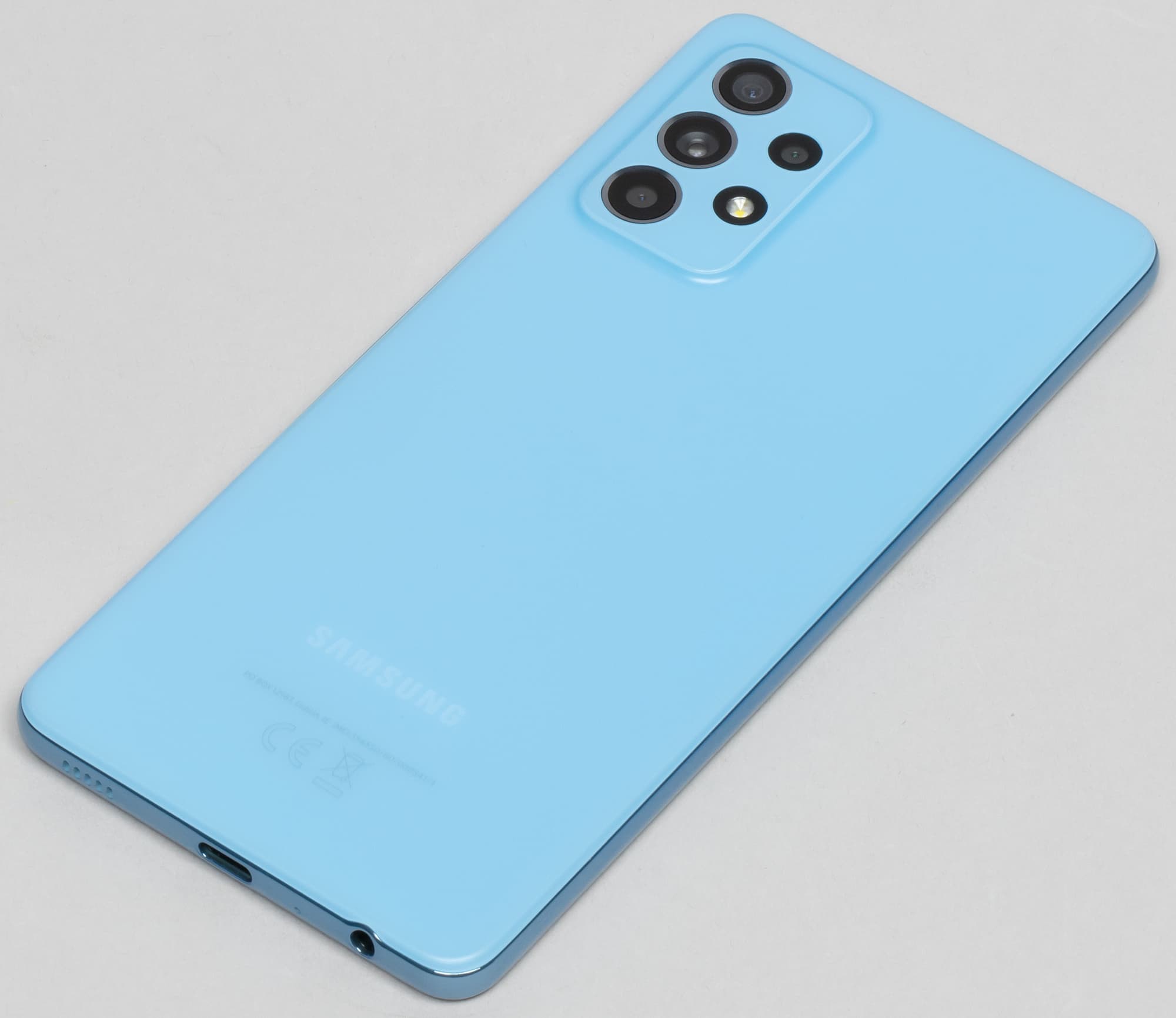 Samsung Galaxy A52 имеет сзади блок с четырьмя камерами и ярким светодиодом. В стандартный для среднеуровневого смартфона набор камер входят основной и широкоугольный модули, а также датчик глубины резкости и модуль для макросъемки: