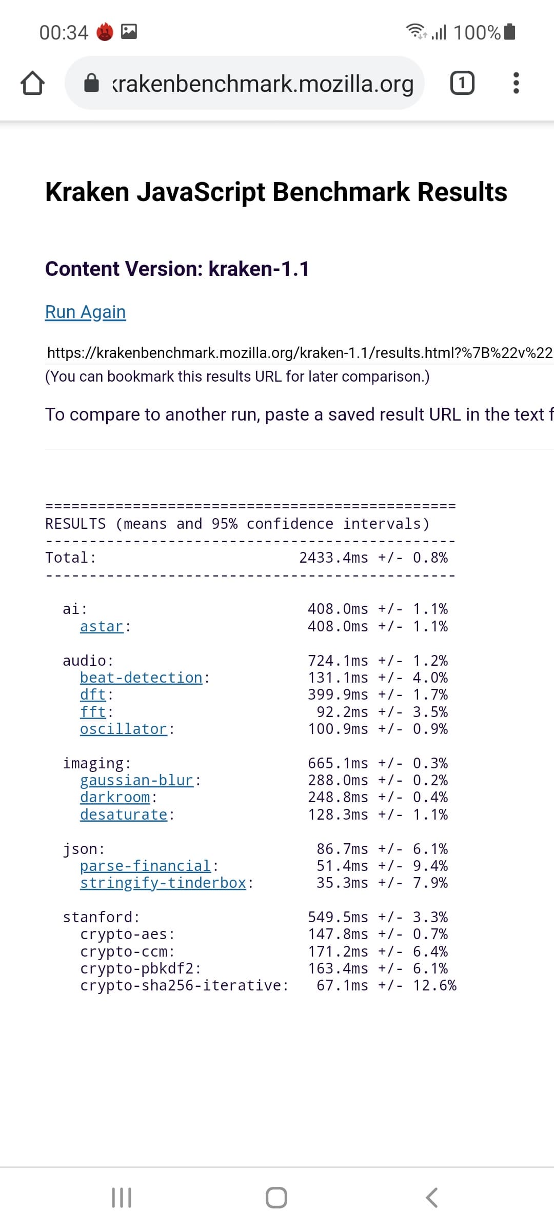 | Mozilla Kraken (мс, меньше — лучше) | 2433 | 2856 | 3162 | 3269 | 5586 |