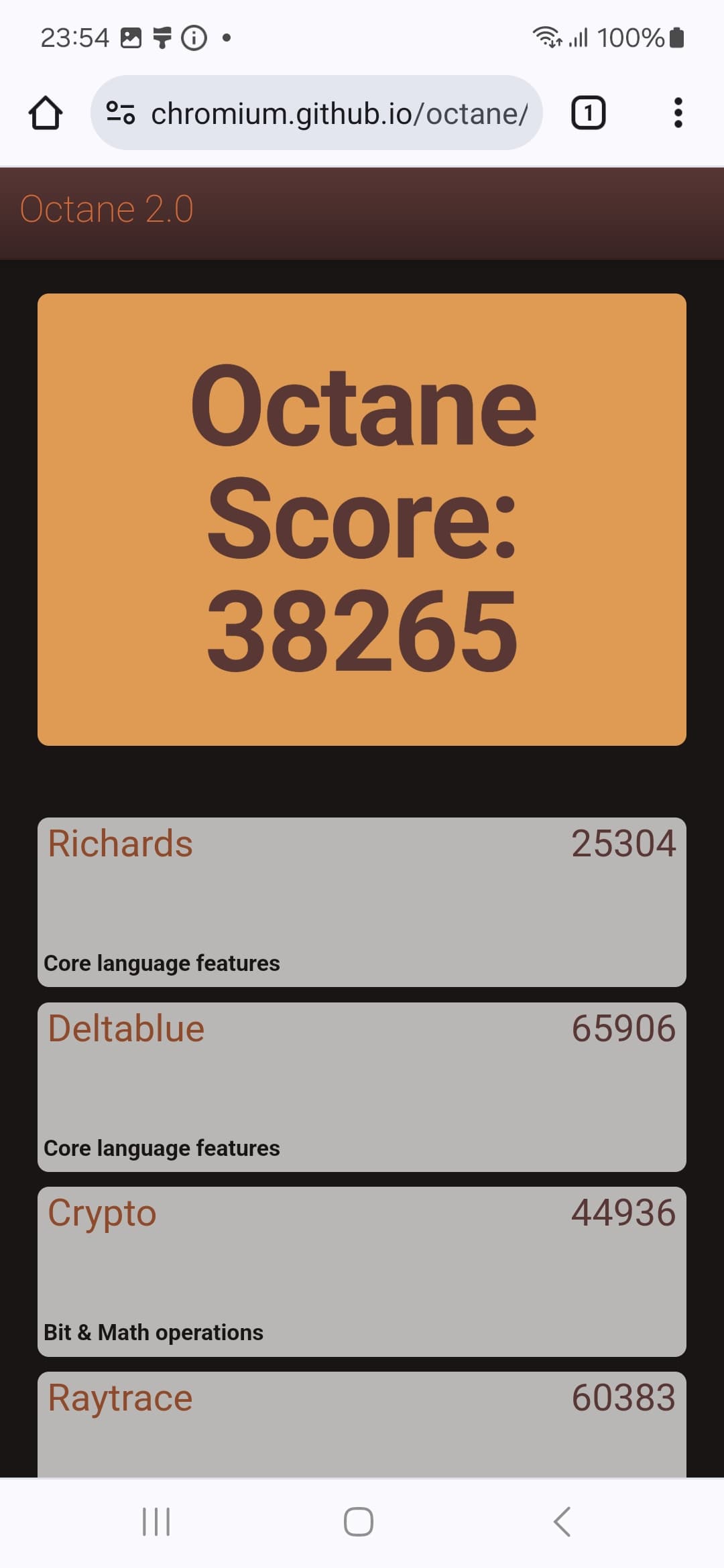 | Google Octane 2 (больше — лучше) | 38265 | 34829 | 7118 | 24923 | 39276 |