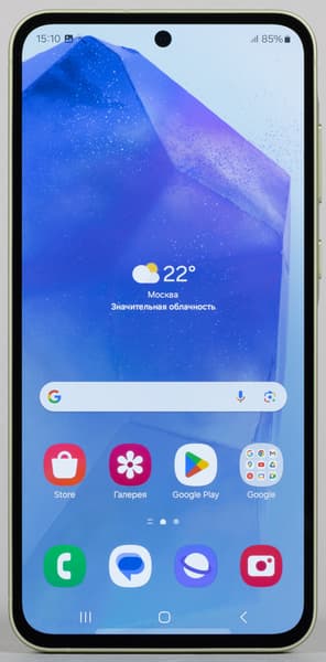 В качестве программной платформы в Samsung Galaxy A55 5G используется ОС Android 14 с собственной оболочкой One UI 6.1. Интерфейс работает четко, быстро, безотказно, хорошо оптимизирован, не замусорен ненужными предустановленными приложениями. Оттягиваемая шторка здесь разделена на две части в зависимости от места оттягивания. Официальный магазин приложений Google Play и доступ к сервисам Google — на месте. Однако поддержки флагманского ИИ Galaxy AI в этом смартфоне нет.