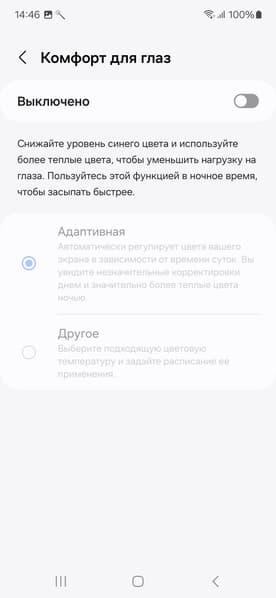 Есть функция Комфорт для глаз, для которой в настройках даже приведено белее-менее корректное описание.