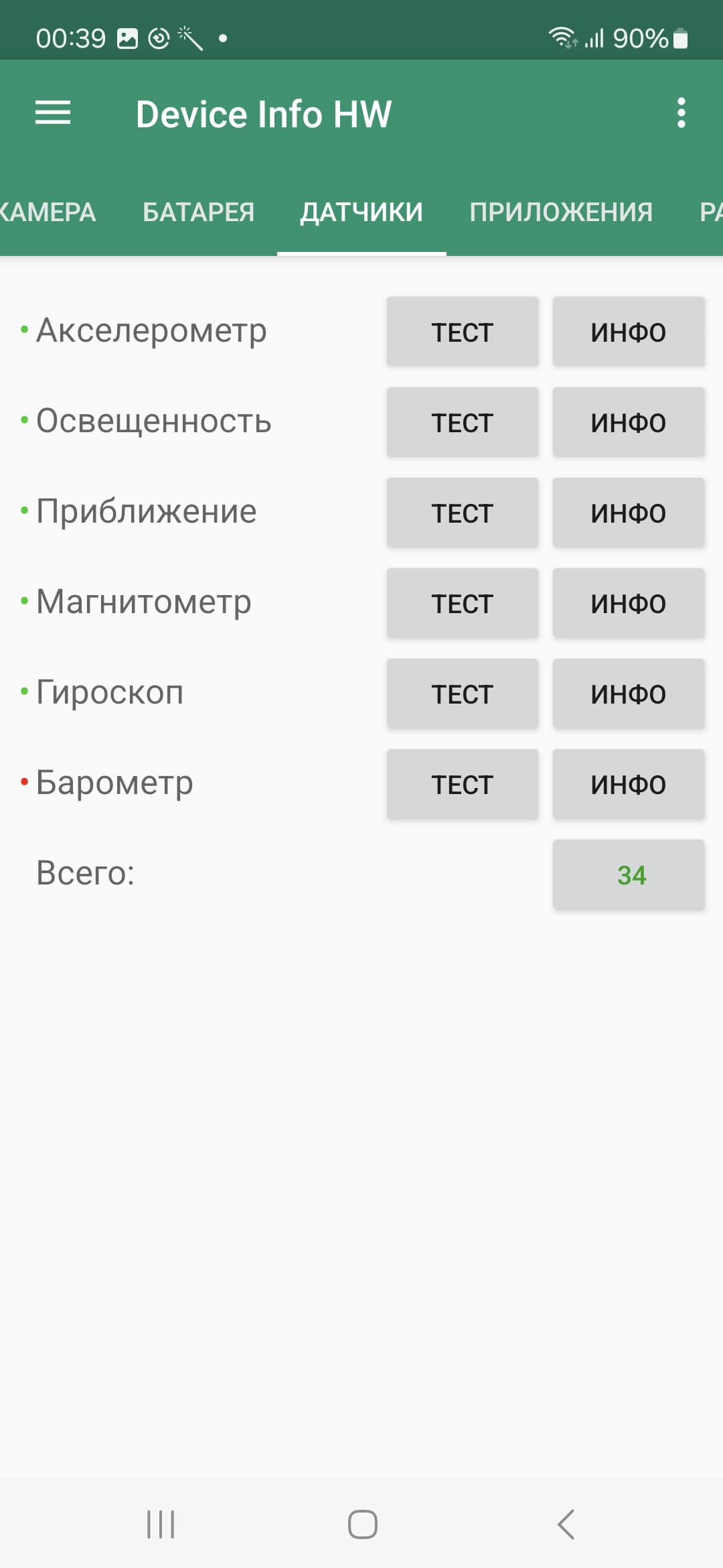 - Датчики приближения и освещения, магнитного поля, акселерометр, гироскоп