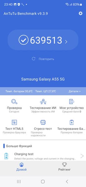 | AnTuTu (v9.x) (больше — лучше) | 639513 | 1003157 | 509328 | 546957 | 669583 |
