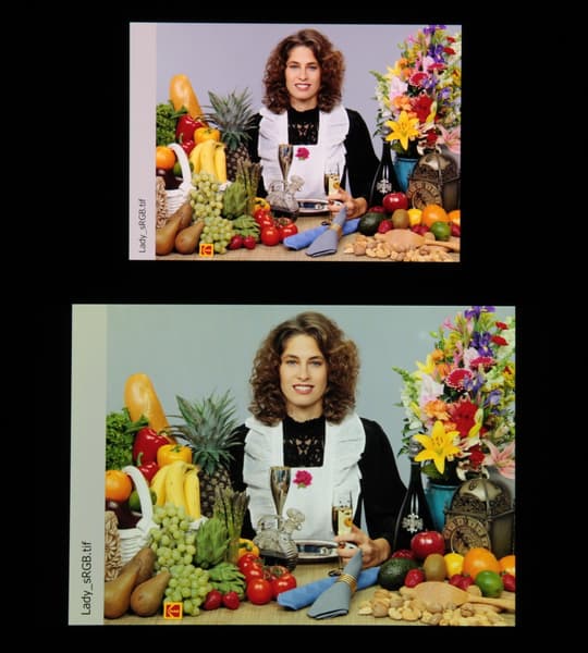 Отметим, что на экранах с уширенным цветовым охватом (без соответствующей коррекции) цвета́ обычных изображений, оптимизированных для устройств sRGB, выглядят неестественно насыщенными. Отсюда и рекомендация: в большинстве случаев смотреть кино, фотографии и все естественное лучше при выборе профиля Естественные цвета.