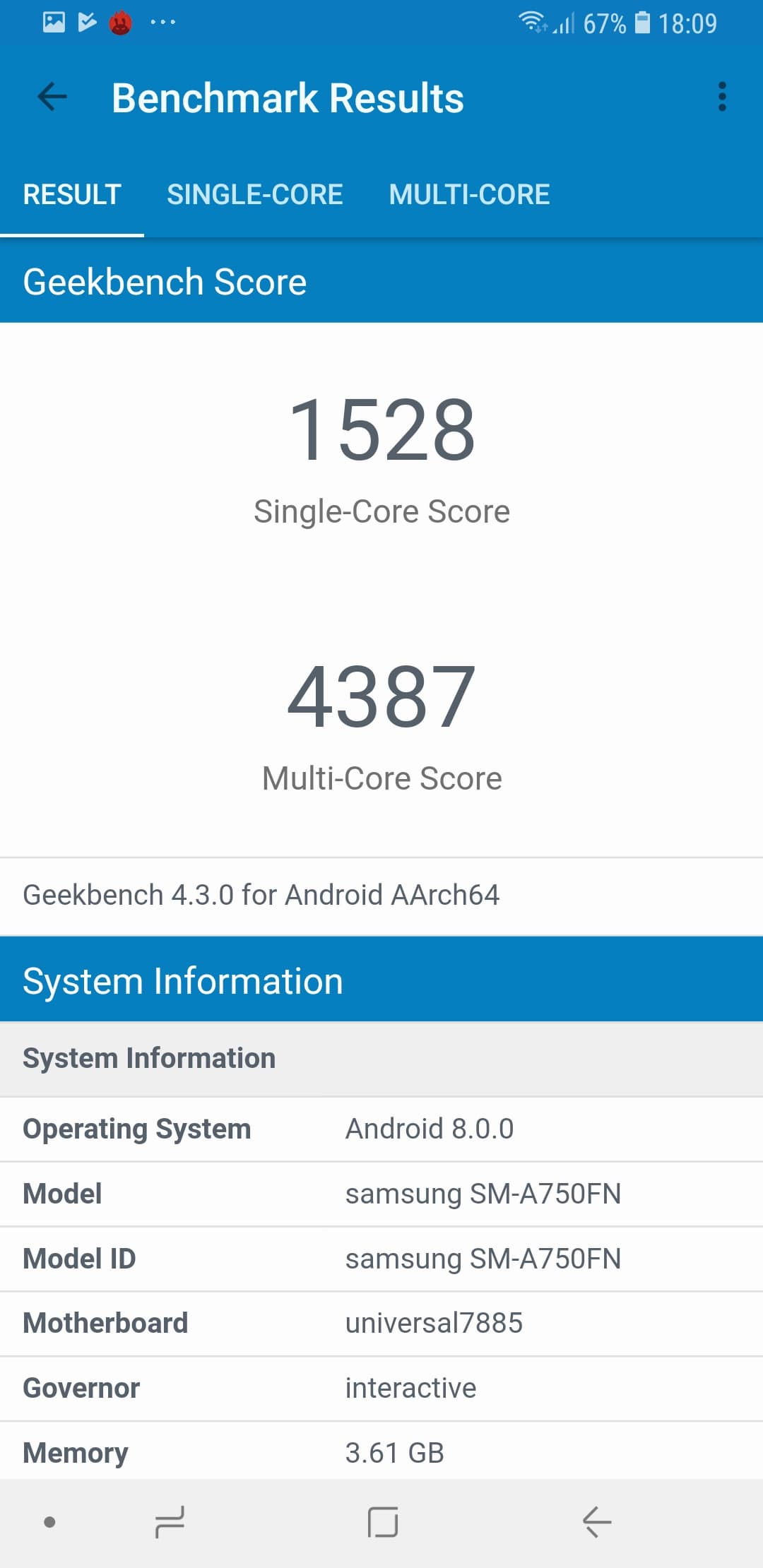 Samsung Exynos 7885 немного слабее во всех тестах, чем Qualcomm Snapdragon 660, на которой работает старшая модель Samsung Galaxy A9 (2018), но тоже демонстрирует весьма неплохие результаты. Обе эти SoC не относятся к разряду топовых и флагманских, но это явно высший средний класс, и показатели производительности у обеих моделей Galaxy A нынешнего года очень достойные.